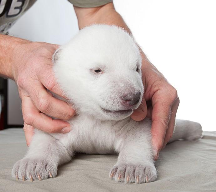 Медвежонку уже исполнился месяц и он весит 3 килограмма 200 граммов. Его имя "Сику" с гренландского означает "морской лед".