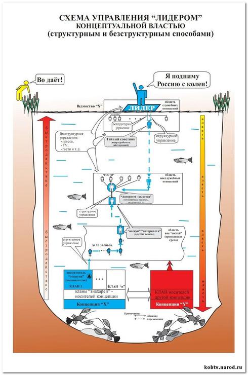 Кадры действительно решают всё, но как показывает эта схема, под кадрами, которые решают всё, следует разуметь не столько те кадры, на которых сосредотачивают внимание обывателей СМИ, и которые занимают те или иные должности в структурах государственной власти и сферы частного предпринимательства, сколько иные кадры, действующие вне официальных структур власти.