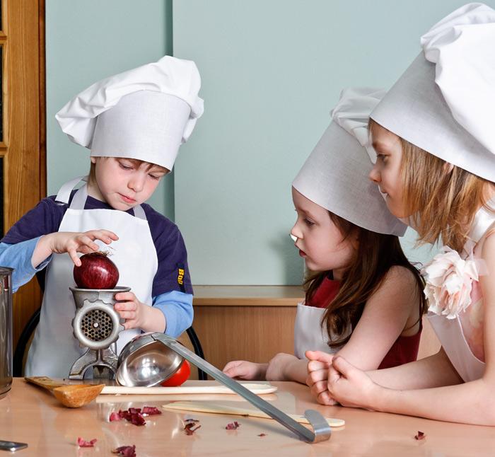 в повара – игрушечные бытовые приборы, техника, посуда, фартук, колпак;