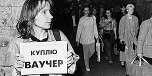 - Обратите внимание на дату введения ваучеров и начала ваучерной приватизации – 1992 год. Сбережения граждан, накопленные за предшествующие годы и десятилетия, в том числе и бабушкины похоронные, тогда были фактически уничтожены. У подавляющего большинства народа не осталось средств для участия в приватизации. Они стали нищими. Отказавшись от какой-либо компенсации вкладов в сбербанке, Гайдар показал: частная собственность граждан для него не значит ничего. Эта его принципиальная мировоззренческая позиция не имела ничего общего ни с либерализмом, защищающим частную собственность, ни с приверженностью элементарному правопорядку. Вклады – частная собственность. Они были у десятков миллионов граждан России. Эту частную собственность ликвидировал ряд правительств – не только гайдаровское. Но легализовал ее уничтожение, отказавшись от компенсаций, Гайдар. Отказавшись от признания внутреннего госдолга (вклады в сбербанке), Гайдар одновременно признал внешний государственный долг, тем самым продемонстрировав двойной подход к двум группам кредиторов российского государства и свои преференции.