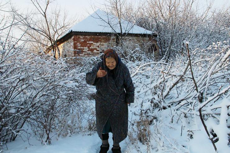 Баба Варя на улице.