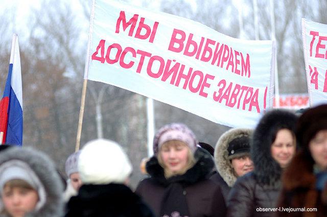Ближе к назначенному времени организованные колонны мордатых чиновников под песню о системе Град и Путине который сзади, во главе с отвественными за сбор стали подтягиваться на площадь.
