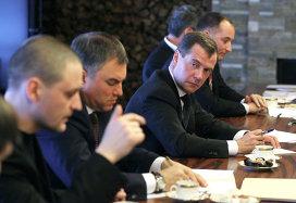 В начале встречи Медведев подчеркнул также, что он «готов обсудить и другие вопросы», но считает, что «основной набор проблем связан с тем, как мы видим развитие политической системы».