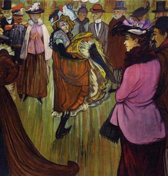В поисках нужного альбома на книжной полке на глаза попался альбом с работами французского художника-постимпрессиониста Тулуз-Лотрека, мастера графики и рекламного плаката.Он известен своими работами ,связанными с зарисовками и картинами в Мулен- Руж.Благодаря этим работам до нас действительно дошли подлинные лица, прически, костюмы. И это важно,это подлинно.