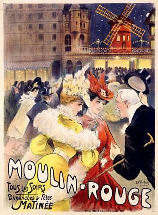 Датой рождения Мулен Руж стал день 6 октября 1889 года, когда господа Оллер и Зидлер впервые открывают двери кабаре "Бал Мулен Руж". Гениальная идея — кадриль, ставшая бессмертным творением, прозванным в дальнейшем с легкой руки англичан "французским канканом", идентифицируется с тех пор со знаменитой красной мельницей, венчающей здание театра в районе Монмартра. Прошло всего несколько месяцев, с момента как мюзик-холл принял своих первых посетителей, а о том, как это "побывать в Мулен Руж" скоро говорил уже весь Париж.