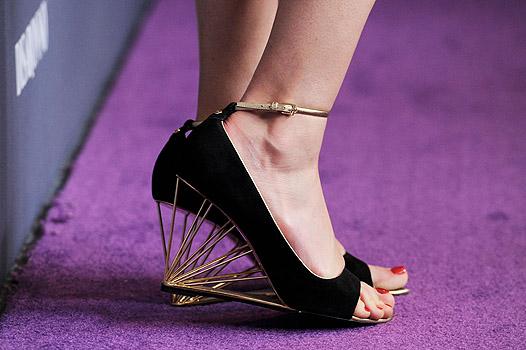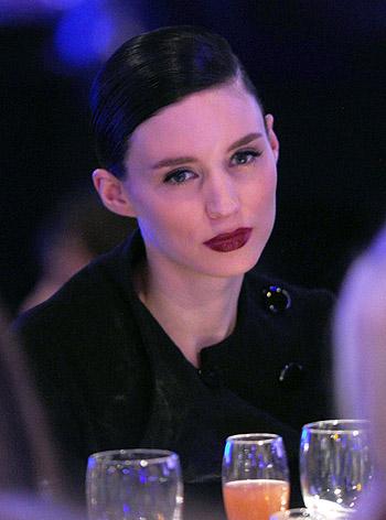 Памятуя о том, что в одном месте соберется множество маститых дизайнеров, пусть и работающих только в кино, селебрити постарались ответственно подойти к выбору нарядов. Руни Мара, как и обычно, сделала ставку на драматический образ, выбрав платье винного цвета от J.Mendel с очень глубоким разрезом. Возможно, поэтому актриса чувствовала себя немного неуверенно, беспрестанно одергивала свой наряд и не знала, куда деть руки.