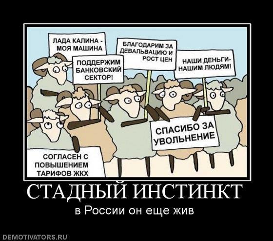 Если бы эта национальная оппозиция с тысячной долей того остервенения, с которым набросилась на «оранжевую гадину», критиковала нашу власть, мы давно бы жили в раю! Суля тяжёлые времена, нам намекают, что коней на переправе не меняют. Но в переломный для Китая момент к власти пришёл Цзян Цзэминь, а «Великую депрессию» лечил Рузвельт, сменивший потерявшего доверие Гувера. Но в России, похоже, наступила «Великая Шизофрения», когда у народа развился «Стокгольмский синдром». Нация стала настолько пассивна, что неспособна поставить знак препинания в предложении: «Избрать нельзя прогнать». Недаром страна держит первое место в мире по психическим заболеваниям, разве можно в здравом уме верить предвыборным обещаниям?